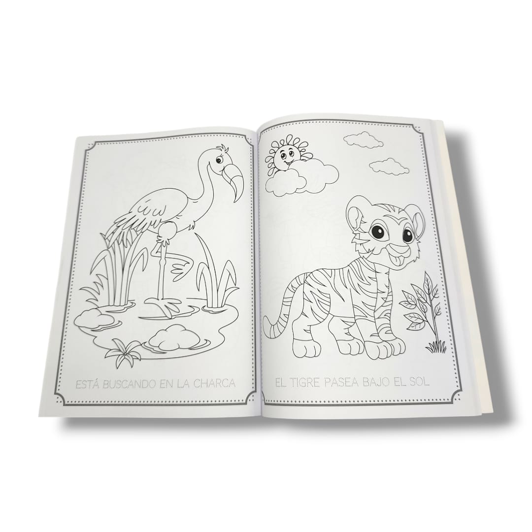 Libros con imágenes grandes de distintos animales 🐶🦁🦒, ideales para pasar horas coloreando y divirtiéndose 🌈