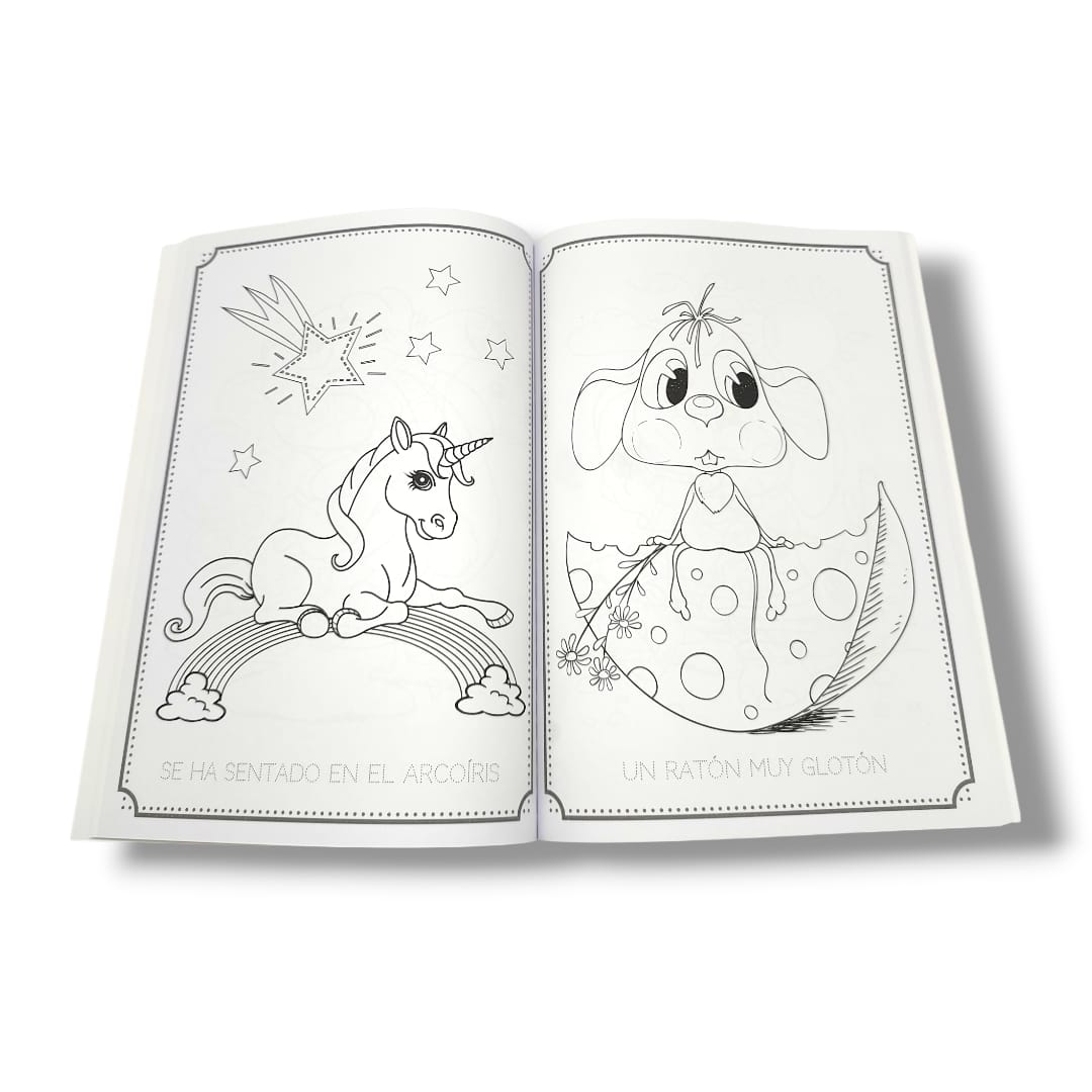 📖 Texto punteado en IMPRENTA MAYÚSCULA, ideal para que los peques aprendan y practiquen mientras colorean